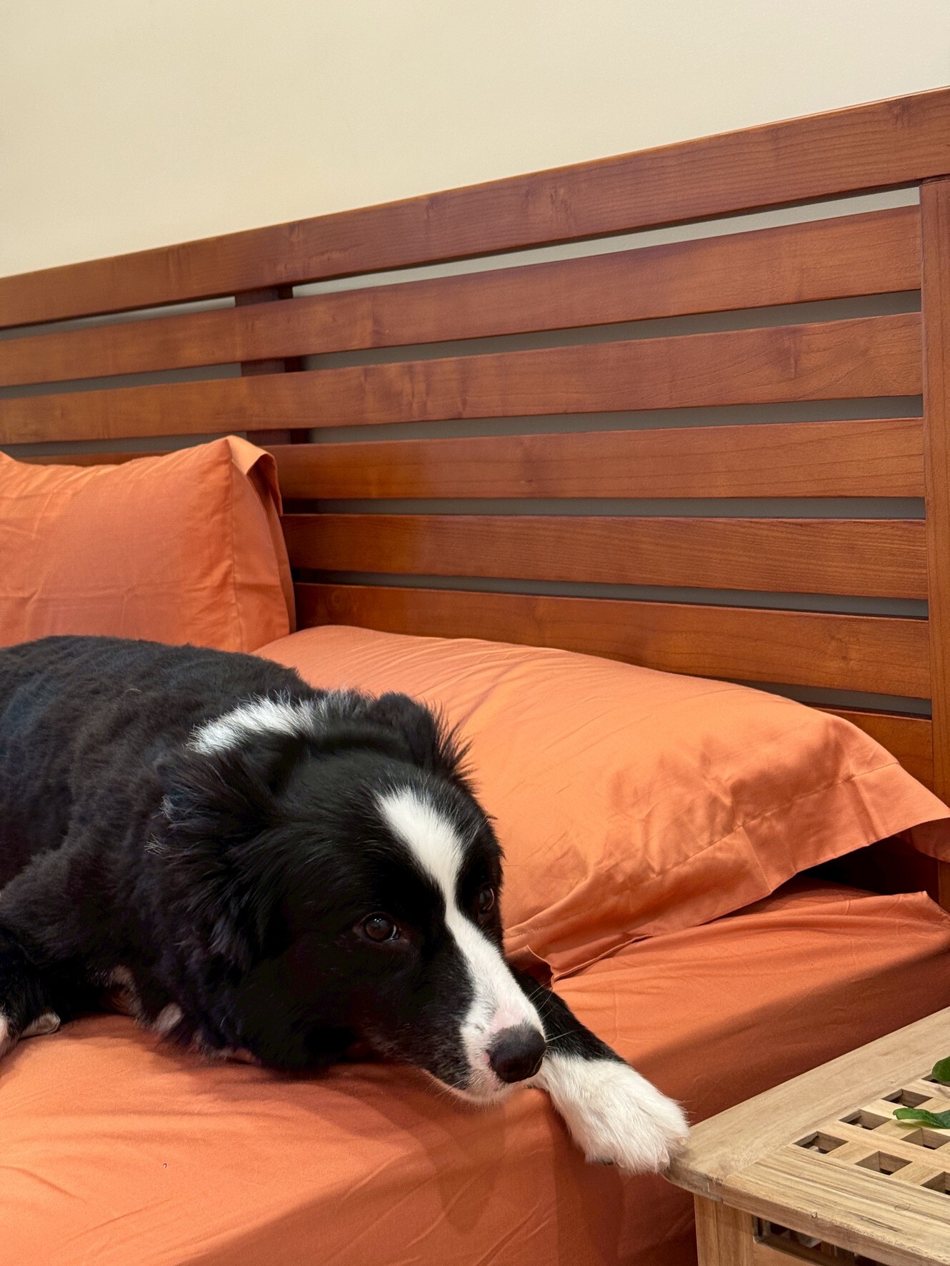 尤其是他們的 60 支天絲棉床包 20 色,每一色都很耐看,跟木質調的家超好搭。我這次選的煦日橘+雪杏米,原本還怕太跳,但鋪上去後意外地暖、意外地舒服。每次走進房間都會忍不住多看兩眼。