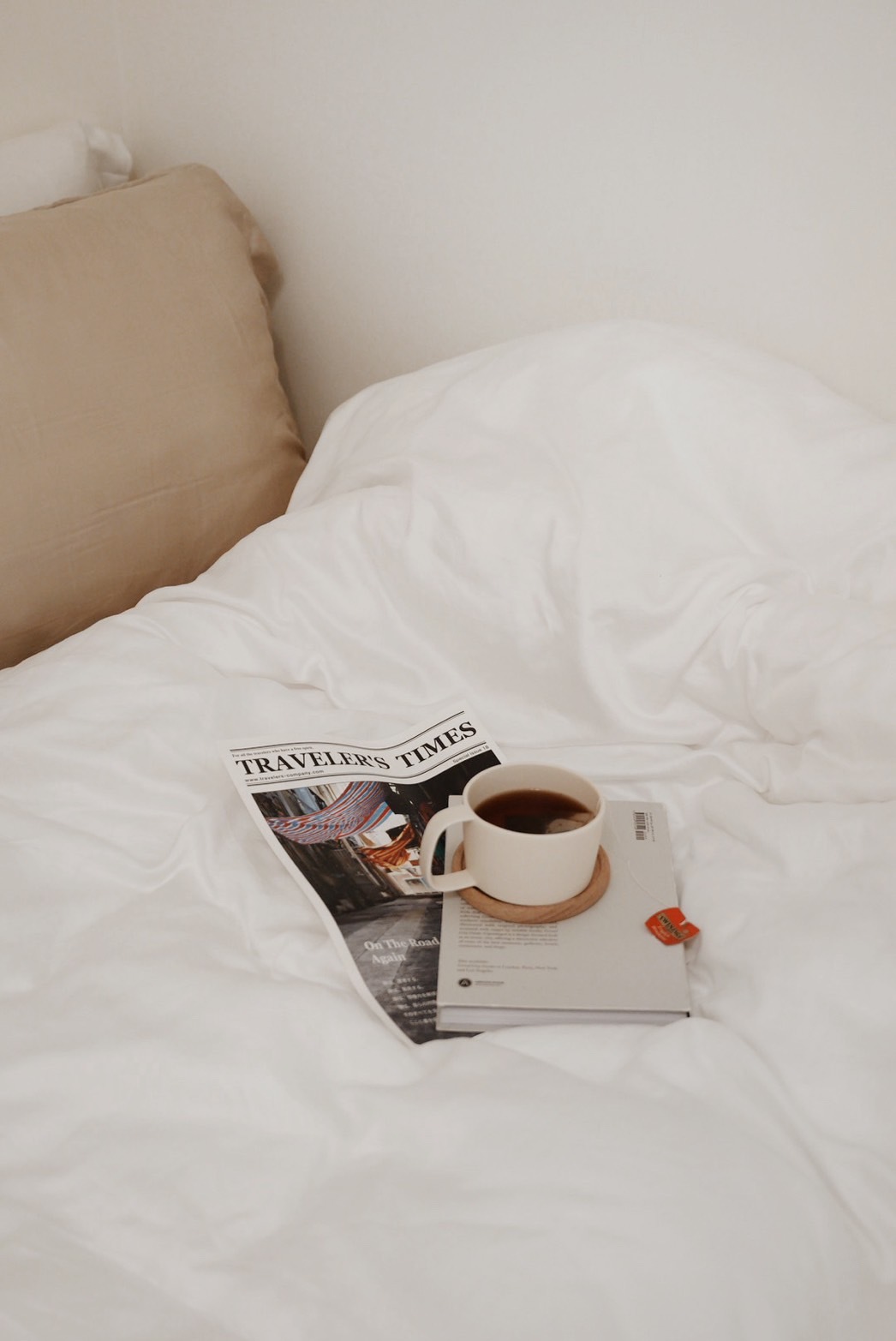 搭配淺茶米的枕頭套&床包,