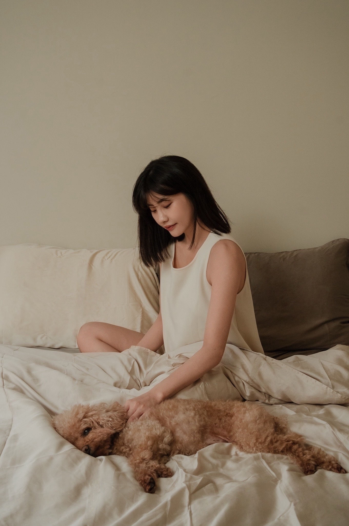 於是寢具選了AnD HOUSE安庭家居簡單溫柔的大地色系雙色配 香谷棕/淺茶米