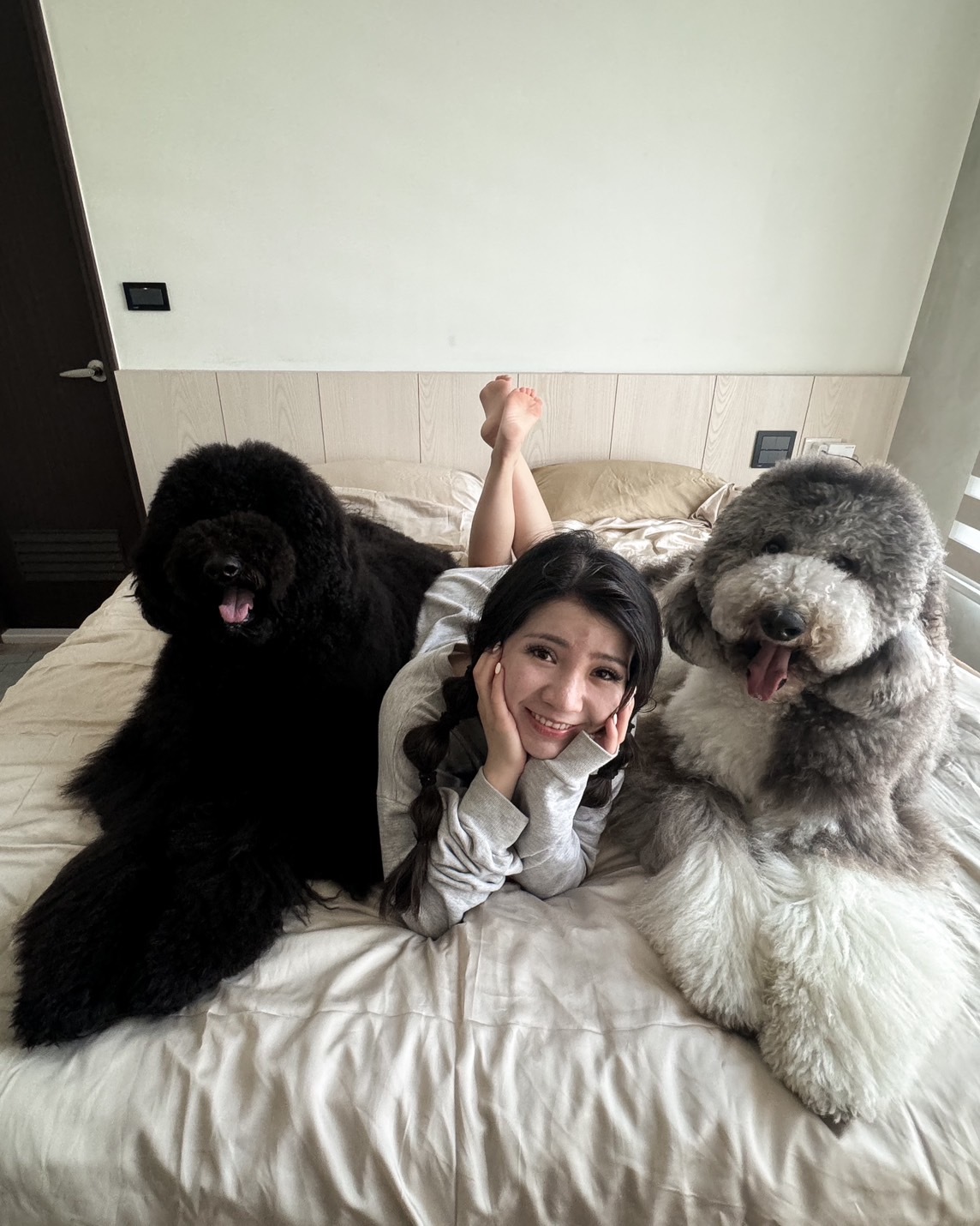 當了毛爸媽之後,一直有個心願就是和豆點一家四口抱著睡覺,但平常豆點因為怕熱幾乎不會跟我們一起睡覺,但自從我們換了安庭家居的 60支天絲床包,終於幫我們實現夢想了