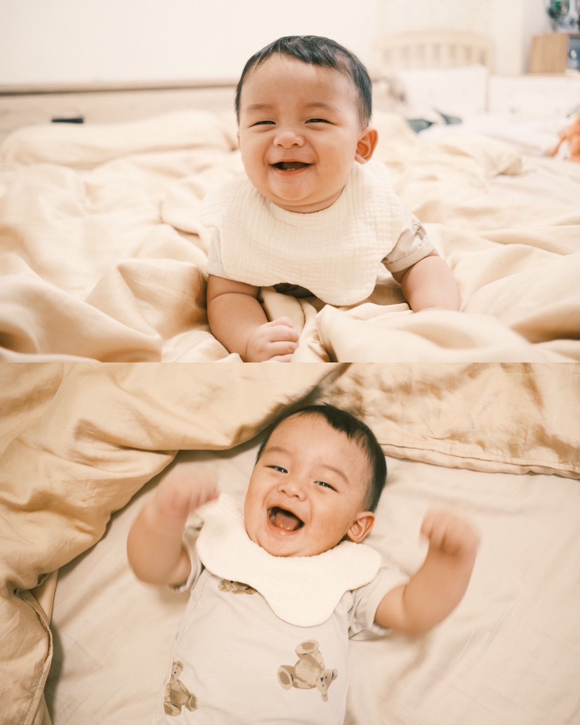 小煦常常打開手手摸床單的觸感,連貓咪都很愛(˶‾᷄ ⁻̫ ‾᷅˵)