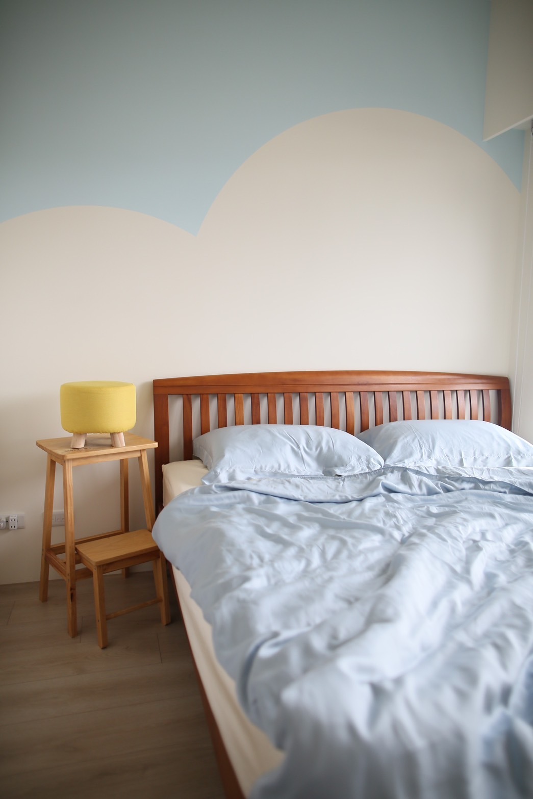 於是我們在小孩房的牆上畫出跳色雲朵圖案