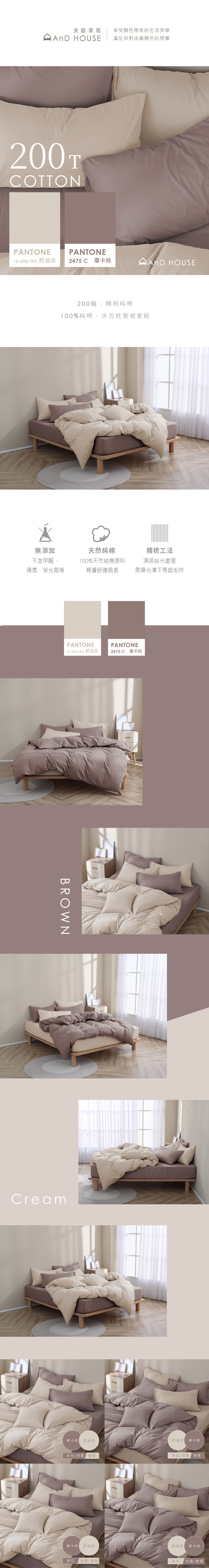 ▲200織純棉 100%純棉 雙色配 摩卡棕x奶油杏