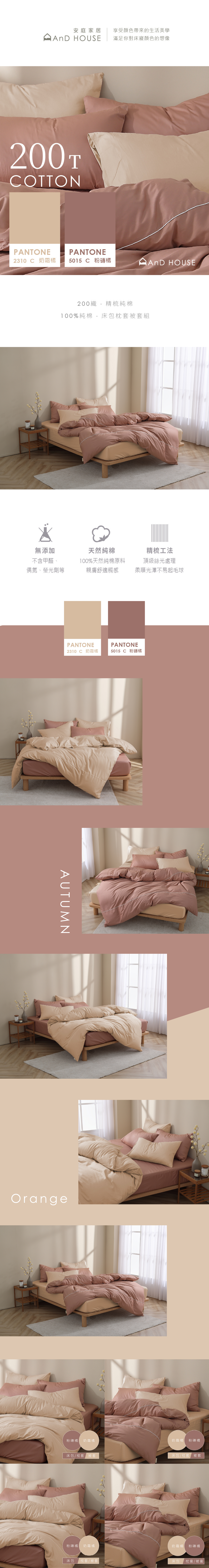 ▲200織純棉 100%純棉 雙色配 奶霜橘x粉磚橘 泰式奶茶