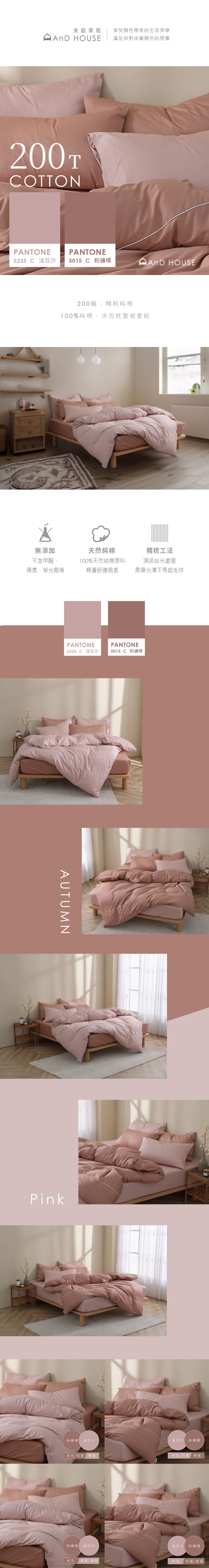 200織純棉|100%純棉|雙色配|淺豆沙x粉磚橘 玫瑰戀人