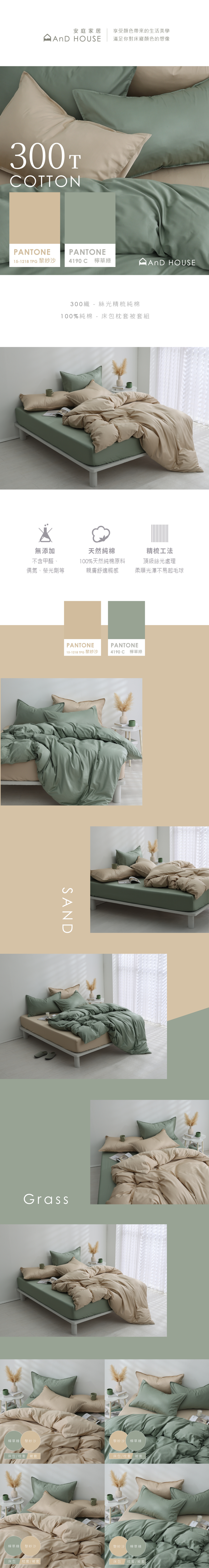 300織精梳純棉|100%純棉|雙色配|檸草綠x黎紗沙