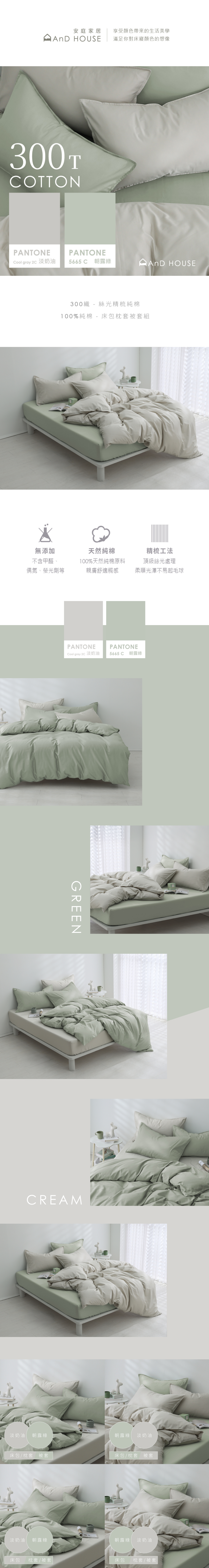 300織精梳純棉|100%純棉|雙色配|淡奶油x朝露綠