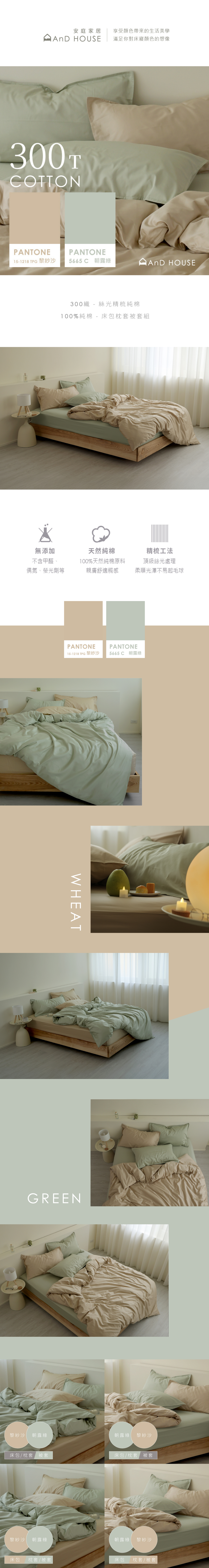 300織精梳純棉|100%純棉|雙色配|黎紗沙x朝露綠