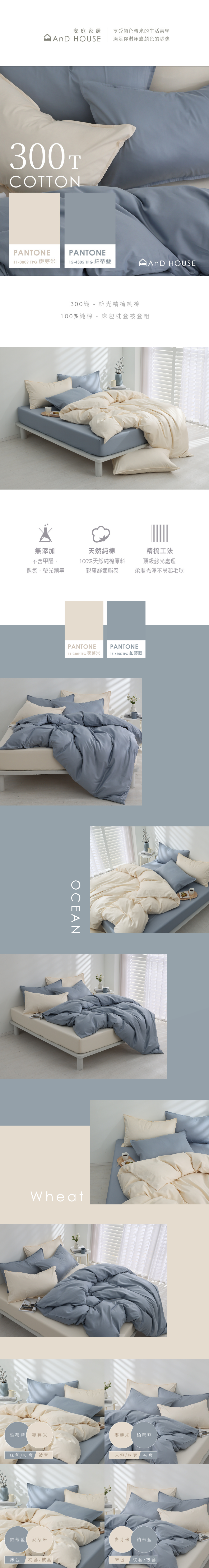300織精梳純棉|100%純棉|雙色配|麥芽米x鉑蒂藍