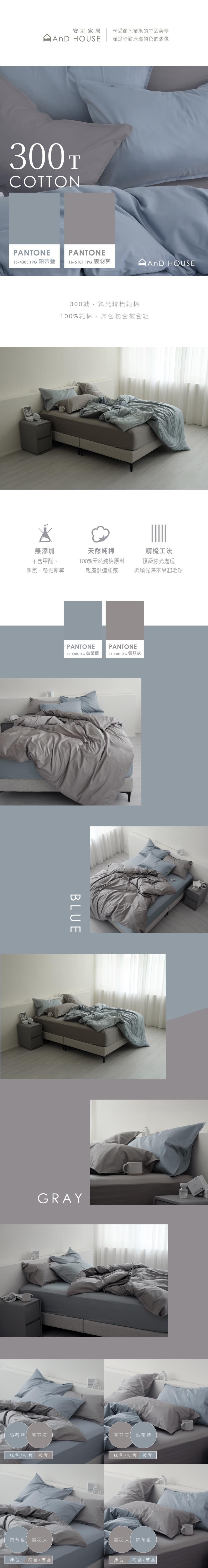 300織精梳純棉|100%純棉|雙色配|鉑蒂藍x雲羽灰