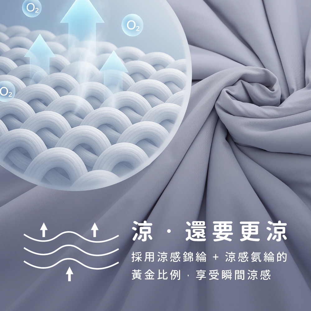觸感滑順、貼膚降溫,透氣不悶、好洗速乾,