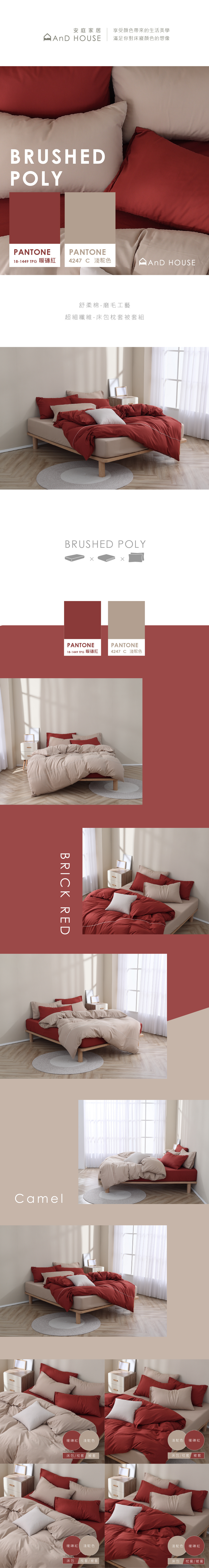 舒柔棉|100%Polyester|雙色配|暖磚紅x淺駝色 紅茶那提