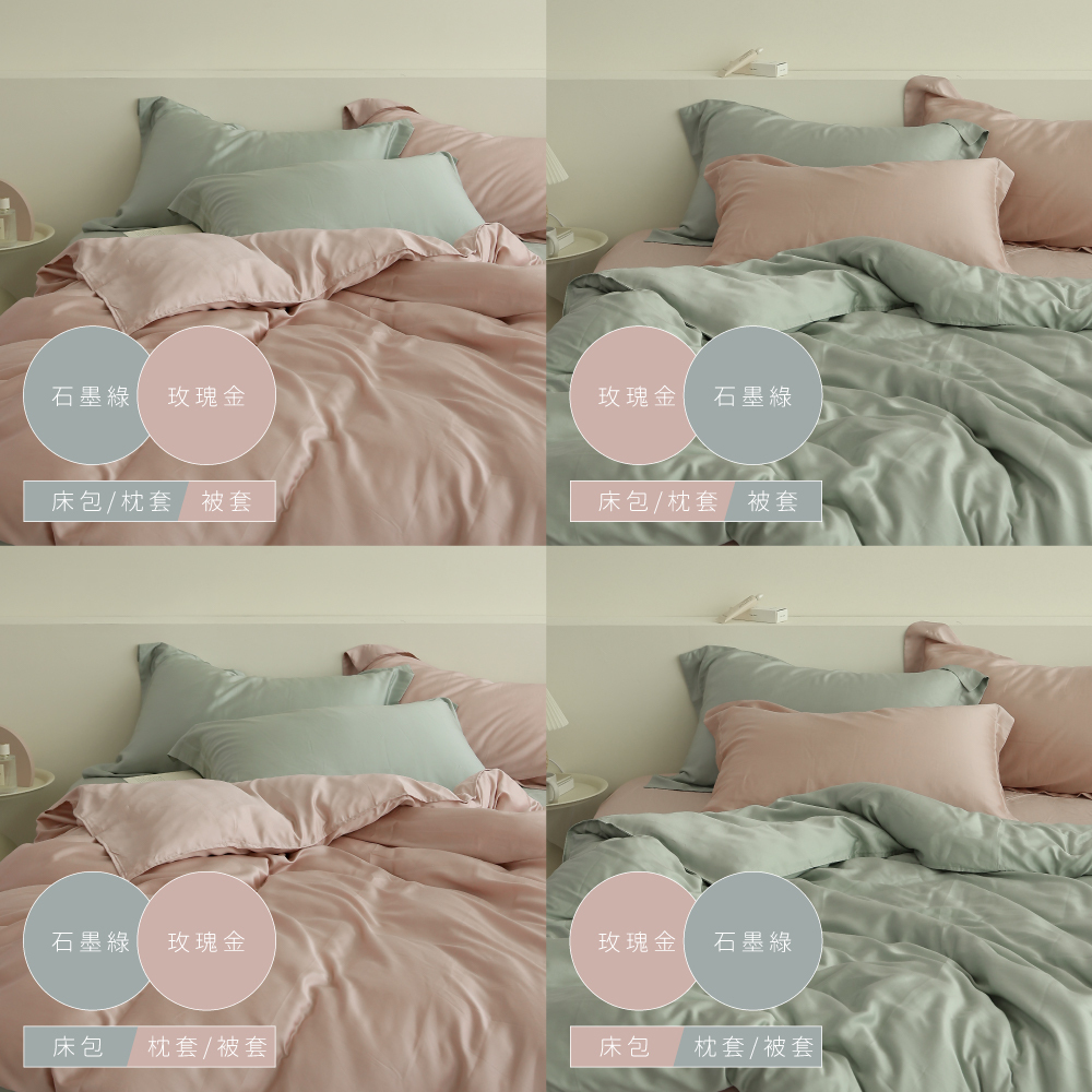 60支天絲|100%萊賽爾|雙色配|石墨綠x玫瑰金