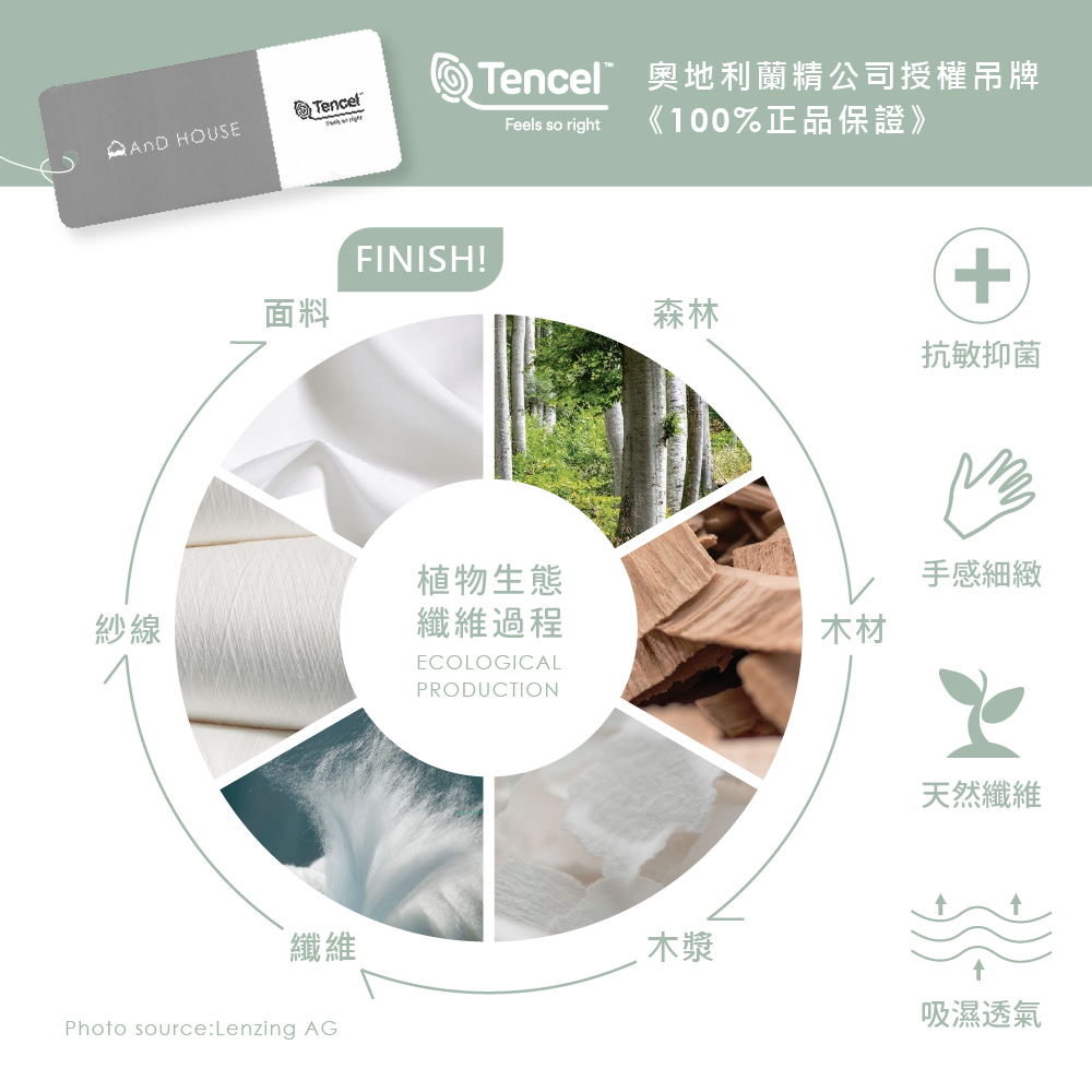 100%萊賽爾纖維(非嫘縈,經奧地利蘭精公司授權認證)