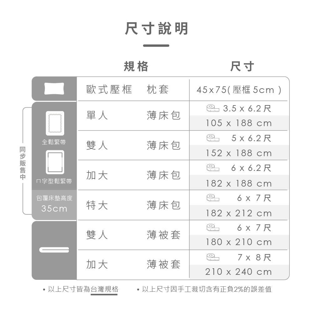 床包可包覆床墊高度:35公分內