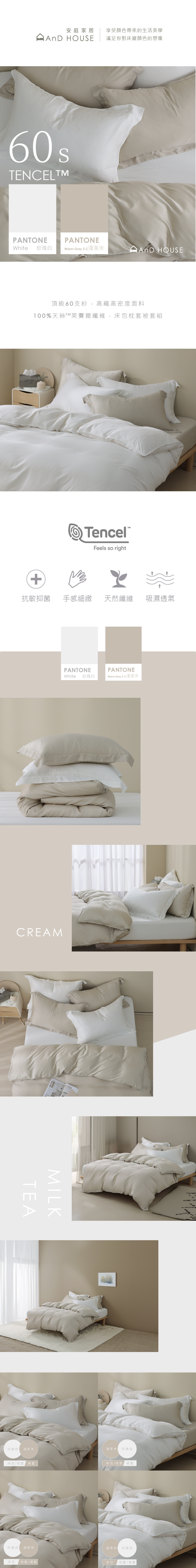 60支天絲|100%萊賽爾|雙色配|珍珠白x淺茶米 奶霜奶茶