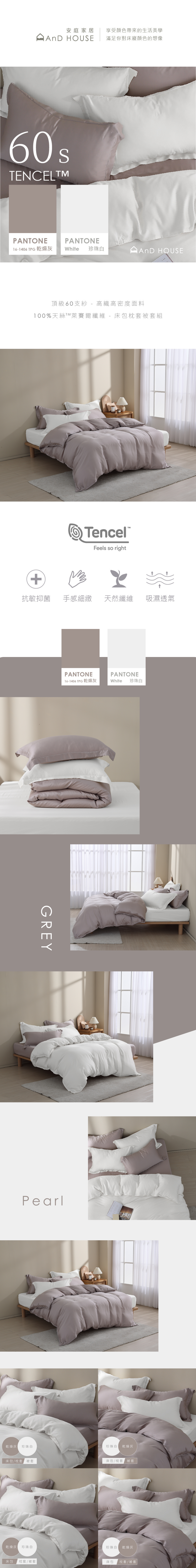 60支天絲|100%萊賽爾|雙色配|珍珠白x乾燥灰