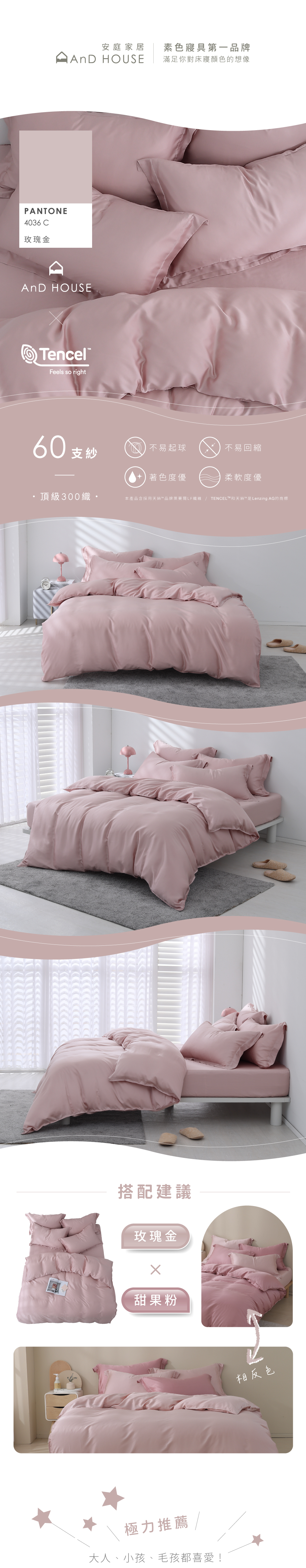 60支天絲|100%萊賽爾|玫瑰金|單品&床包被套組