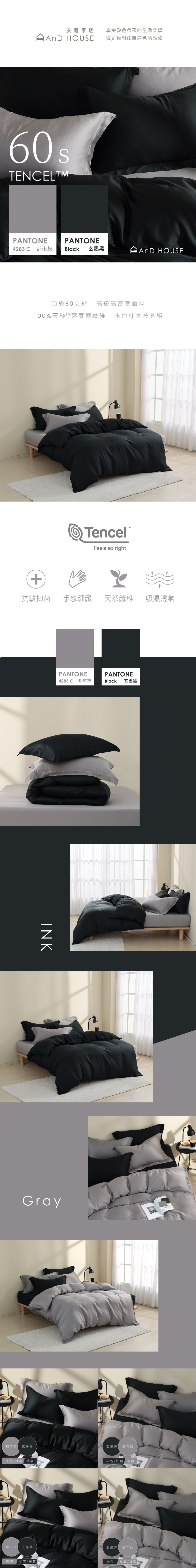60支天絲|100%萊賽爾|雙色配|都市灰x玄墨黑