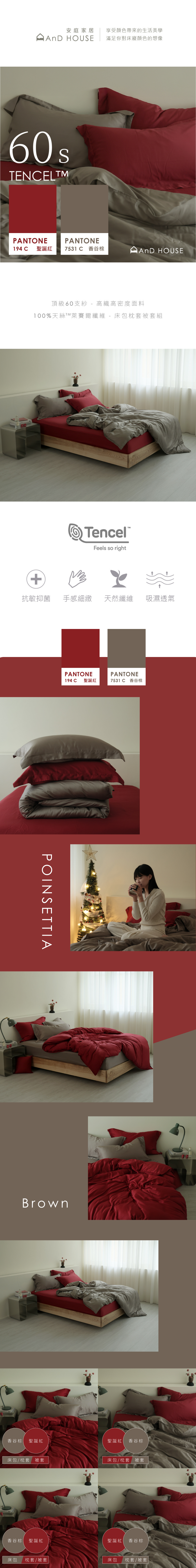 60支天絲|100%萊賽爾|雙色配|聖誕紅x香谷棕