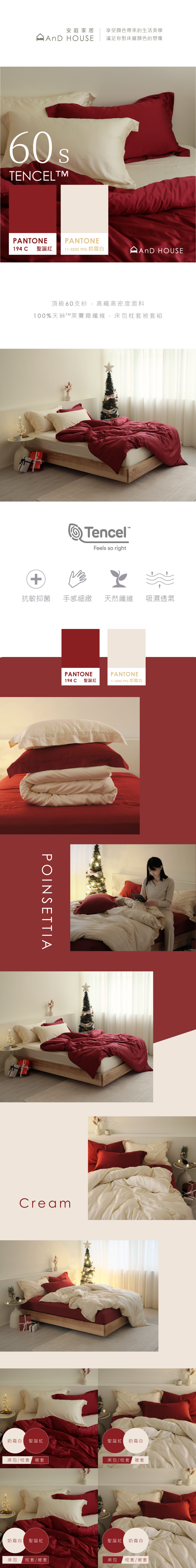 60支天絲|100%萊賽爾|雙色配|聖誕紅x奶霜白