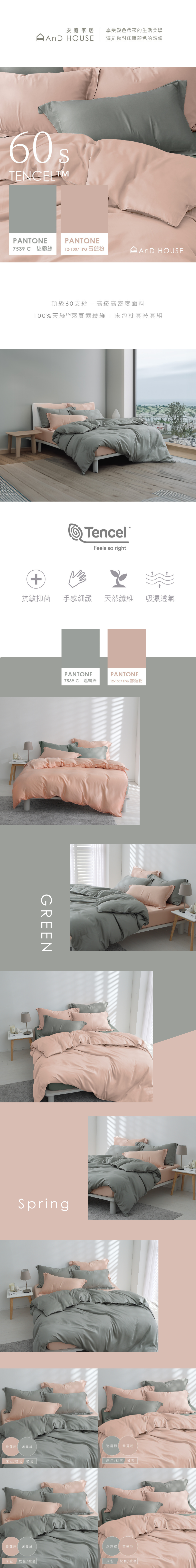 60支天絲|100%萊賽爾|雙色配|迷霧綠x雪蓮粉 椿花葉語