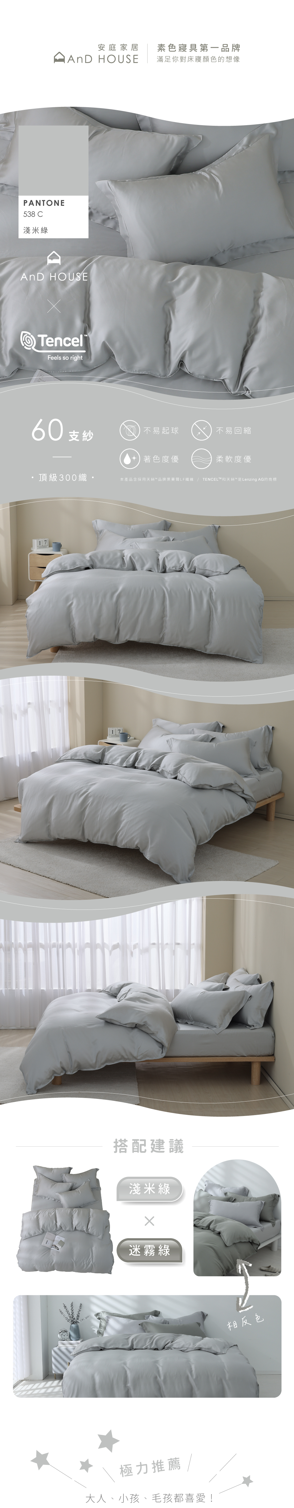 60支天絲|100%萊賽爾|淺米綠|單品&床包被套組