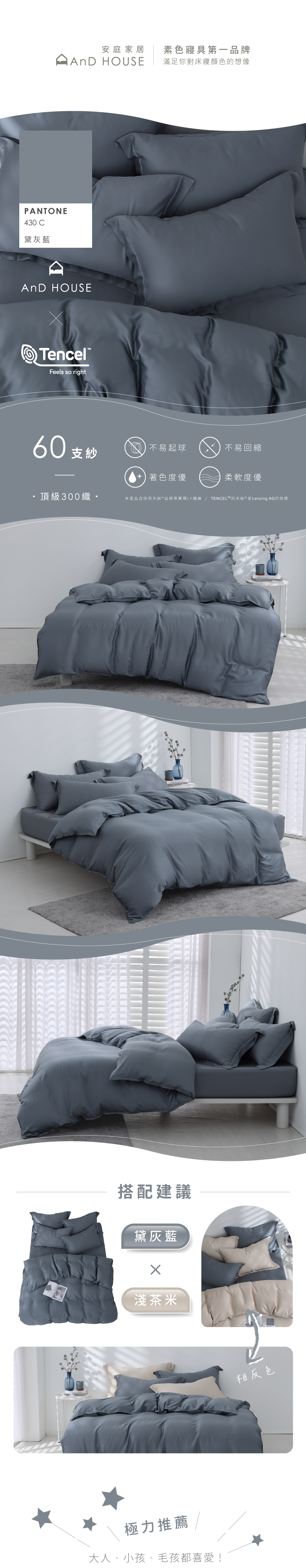 60支天絲|100%萊賽爾|黛灰藍|單品&床包被套組
