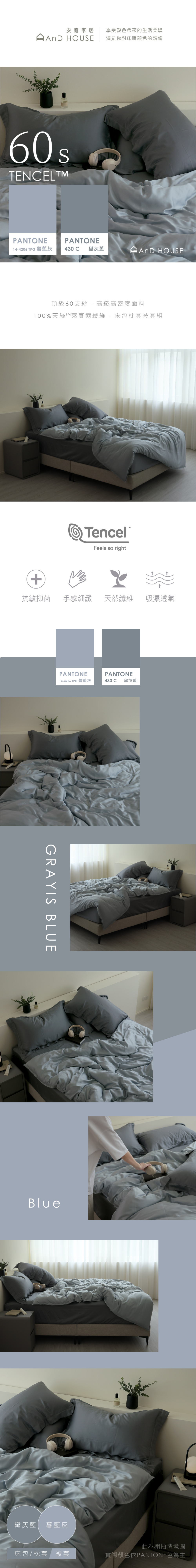 本產品一律為黛灰藍【床包枕套】x暮藍灰【被套】套組