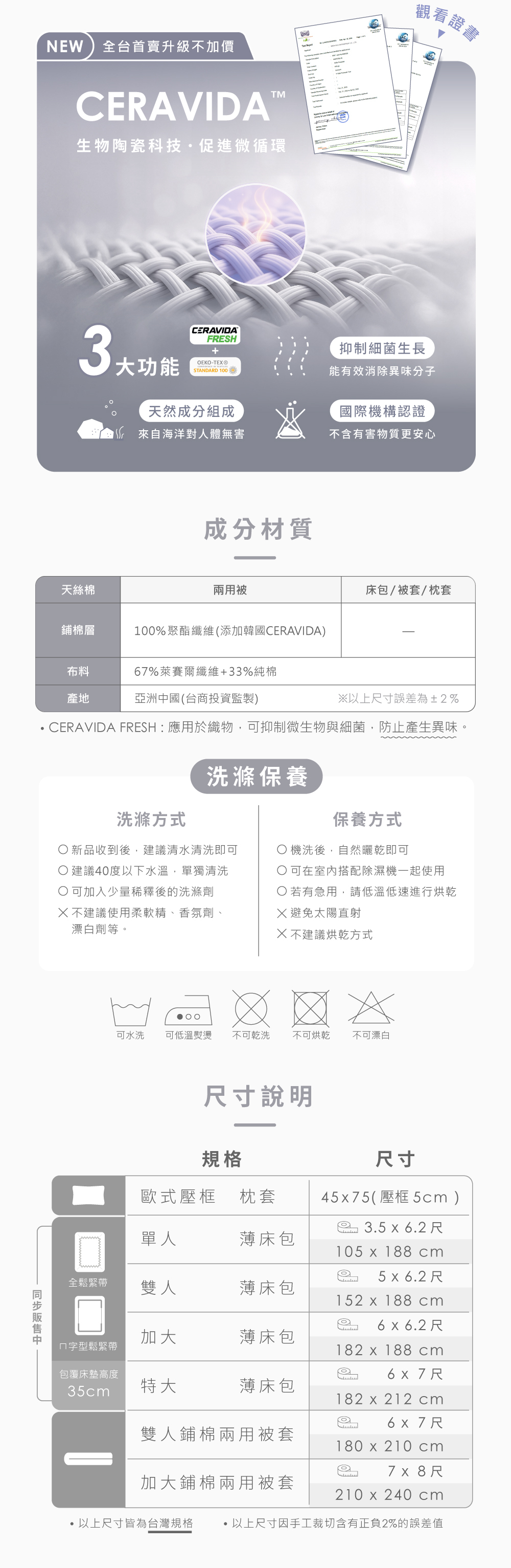 枕套2入 薄床包1入 鋪棉兩用被套1入(非冬被)