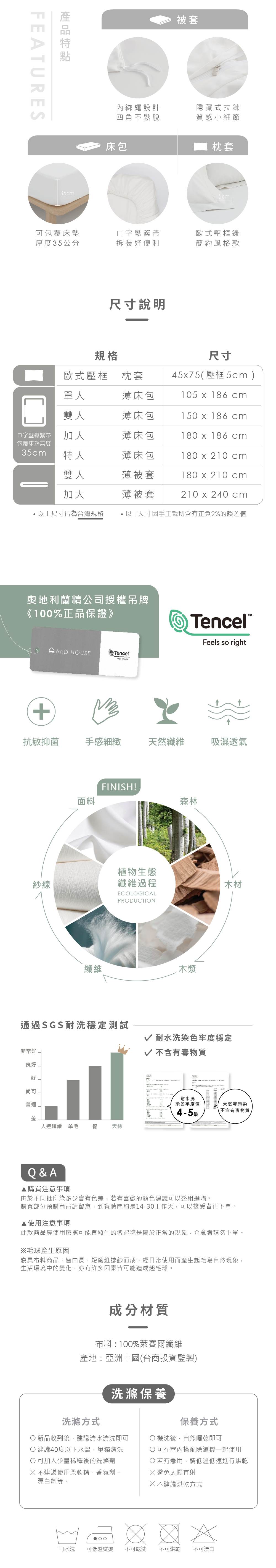 1.採用奧地利蘭精公司出品100%萊賽爾纖維(Lyocell)原料。